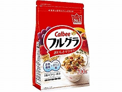 フルグラはオーツ麦を主原料とし、複数の穀物を香ばしく焼き上げたザクザク食感のグラノーラとフルーツの酸味と甘みがひとさじで楽しめる朝食シリアル。