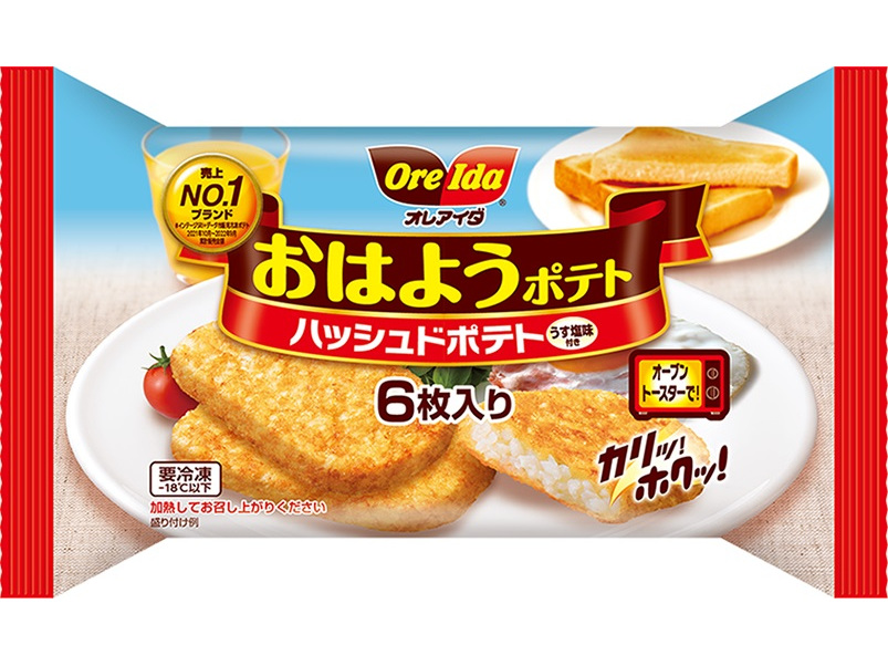 カリッと香ばしい食感と、食べごたえたっぷりの小判型ハッシュポテト。オーブントースター調理で忙しい朝にぴったり! ちょっと小腹がすいた時、お夜食に、ランチメニューの一品に、行楽のお供に、お弁当のおかずに、ビールのおつまみなどにぴったりな一品です。あたためて冷やしでもおいしく召し上がれます。
