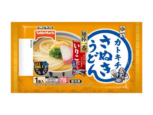 こだわりの包丁切りうどんに、瀬戸内産いりこの天然だしが香るまろやかでコクのあるつゆが付きました。つゆのだし感と旨みがアップしました。