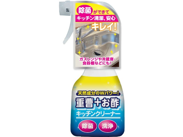 重曹+お酢のWパワーでキッチン周りを洗浄・除菌。リニューアルで内容成分を改良、泡立ちが良くなり汚れに密着。
