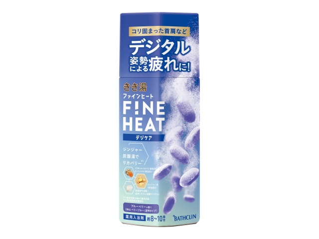 ●コリ固まった首肩などデジタル姿勢による疲れに!●ジンジャー炭酸湯が忙しい現代人の疲労感を効率リカバリー*1高濃度炭酸*2+生薬(ジンジャー)+温泉ミネラル(硫酸ナトリウム)+トウキンセンカ・カッコンエキス(保湿成分)配合*1現代人のライフスタイルから生じる諸症状を温泉科学と生薬のチカラでサポート*2きき湯食塩炭酸湯比●ブルーベリーの香り/ベリーブルー(透明タイプ)