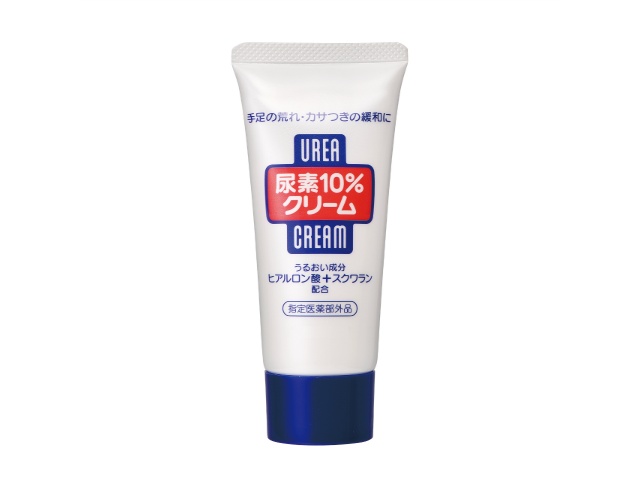 手足の荒れ、カサつきの緩和に。指先・かかと・ひじ・ひざに!角質層に水分を保持し、柔軟にする尿素10%配合。うるおい成分ヒアルロン酸+スクワラン配合。チューブタイプ