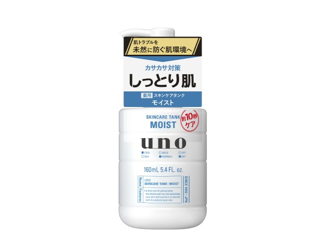 乾いた肌にうるおいたっぷり補給。1本で男の肌悩みに全対応の薬用スピードケア。うるおい補給、ニキビ防止、肌あれ防止、ひげそり後ケア。男性の肌研究をもとにつくられたunoスキンケアシリーズが、肌トラブルを未然に防ぐ肌環境へ導く。テトラバリア成分配合(緑茶エキス(整肌・保護)、チオタウリン・グリセリン(保湿)、タマリンドガム(うるおい保護))。しっとり