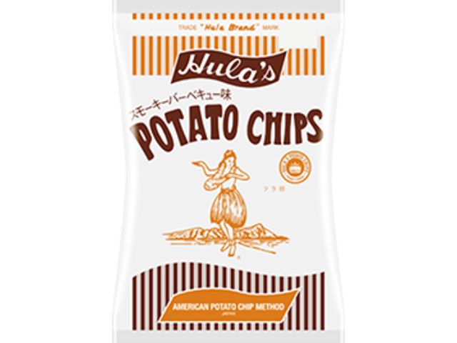 国内産じゃがいもを使用したポテトチップスです。炭火でスモークされた香りと、じっくりローストされた肉の旨み。