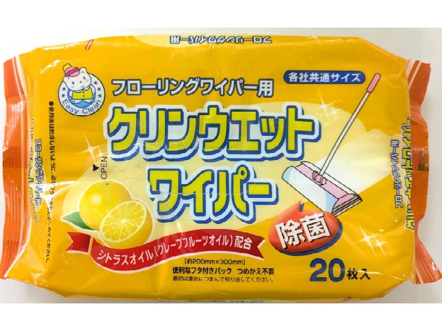 シトラスオイル配合でフローリングの汚れをすっきり落とします。油汚れや食べこぼし汚れをサッとひと拭きできるウエットタイプのシートで、同時に除菌効果が得られます。フローリングワイパー用ですのでお手持ちのワイパーに取り付けるだけで簡単に汚れ落としができます。1枚のシートで約3〜5畳分の広さに使えます。