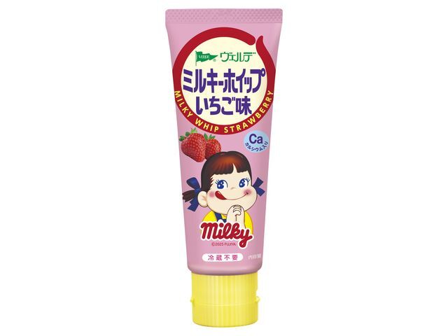 ミルキー練乳由来の原料といちご粉末をブレンドし、まるで生クリームのようにくちどけよく仕上げたふんわり軽いホイップです。お子様の成長に欠かせないカルシウムをおいしく摂ることができます。