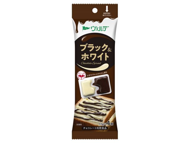 濃厚なカカオ風味のチョコスプレッドに、甘いミルク風味のホワイトチョコスプレッドを合わせました。