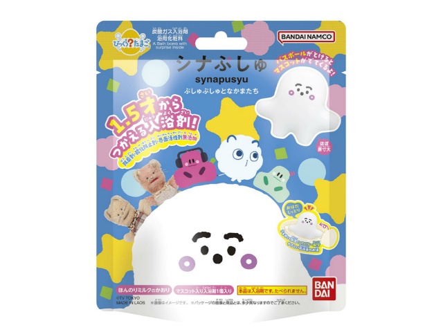 入浴剤が溶けると、中から「ぷしゅぷしゅ」、「にゅう」、「ぱるてぃ」、「ひーたん」、「みーたん」、「そらのライオン」のマスコットがいずれか1つ出てきます。マスコットは集めて楽しい全6種!1.5歳からご使用いただける無添加の入浴剤を使用しています。たまご型の入浴剤。やさしい乳白色のお湯。ほんのりミルクのかおり。