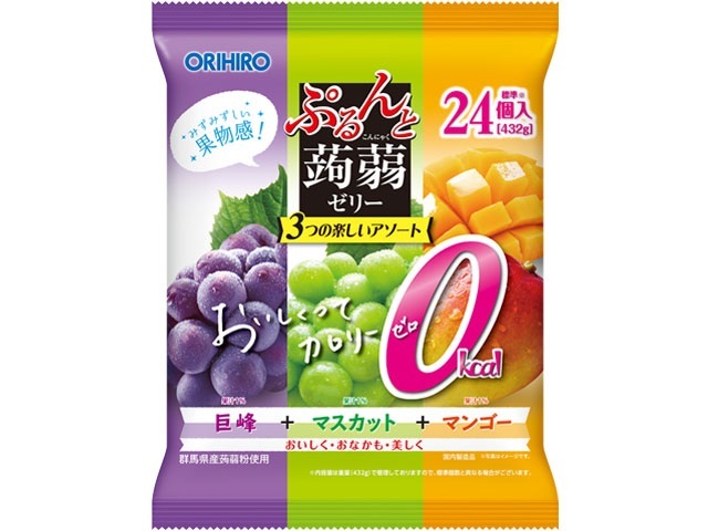 オリヒロ 蒟蒻ゼリーカロリー0 3種大袋 432g x12 *