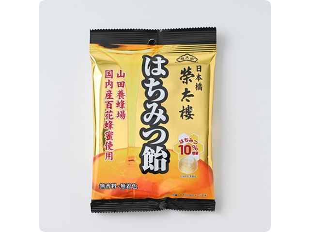 蜂蜜の配合量を10%増量して、蜂蜜の風味をより味わえるようにリニューアルしました。口に入れた瞬間、フワッと口の中に広がる蜂蜜の風味。リョウブや山なすびなど様々な花から採取した山田養蜂場「国内産百花蜂蜜」を使用し飴に仕立てました。