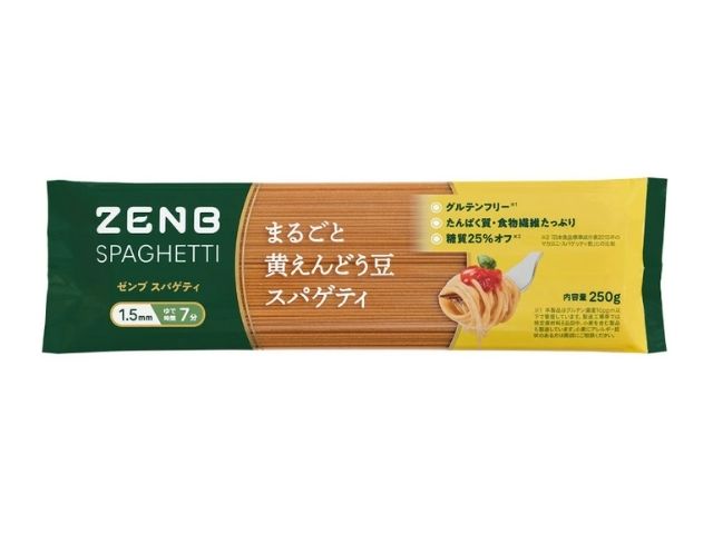 うす皮までまるごとの黄えんどう豆をメインに使用した、グルテンフリーでヘルシーな「豆パスタ」です。