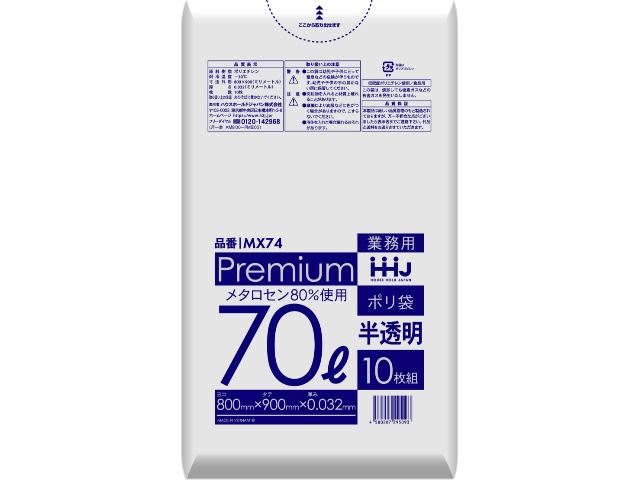 ハウスホールドジャパン MX74 ポリ袋 70L半透明 10枚 0.032x1