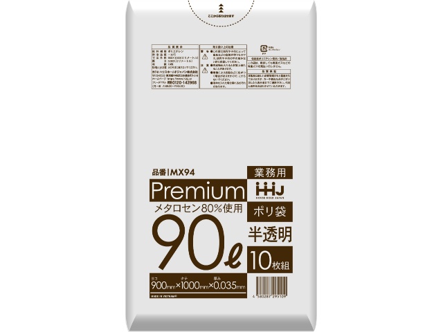 ハウスホールドジャパン MX94 ポリ袋 90L半透明 10枚 0.035x1