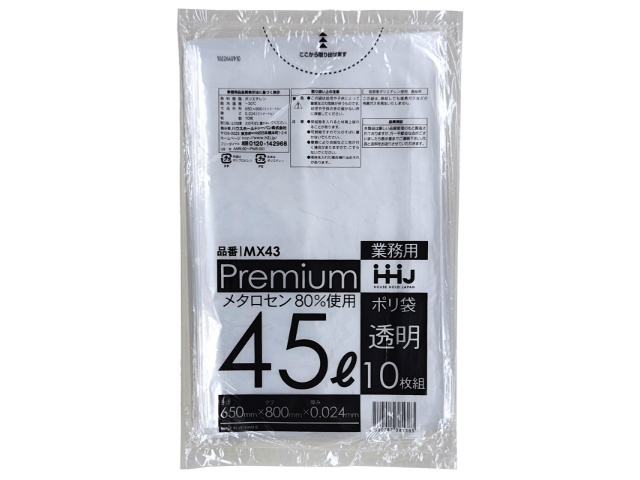 ハウスホールドジャパン MX43 ポリ袋 45L透明 10枚 0.024x1