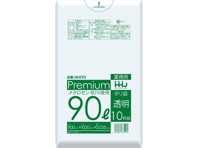 ハウスホールドジャパン MX95 ポリ袋 90L透明 10枚 0.035x1