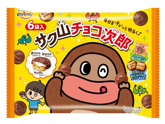 サクサク軽い食感のビスケットとチョコレートを組み合わせたひと口サイズのチョコビスケットです。おいしさをひきたてるミルククリーム入りです。チョコジローの形のチョコレートが全30種類。 ビスケットのプリントは全100種類。チョコジローの“おしゃべり”と“お気に入り”のイラストが描かれています。便利な食べきり小袋パックが6袋入りです。