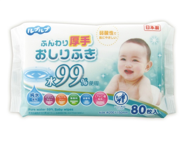 ライフ堂 ルプルプふんわり厚手おしりふき水99%80枚x1