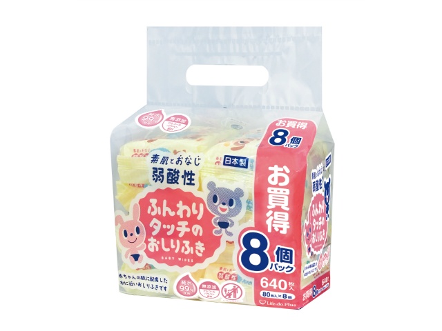 ライフ堂 弱酸性ふんわりタッチのおしりふき80枚8Px1