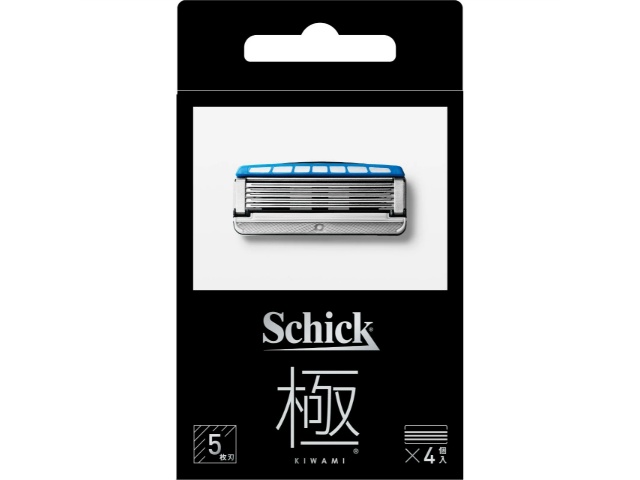 シックの最上位機種*「シック極」の替刃4コ入りの商品。(*ハンドルの衝撃吸収機能によるシック史上最高の剃り心地)