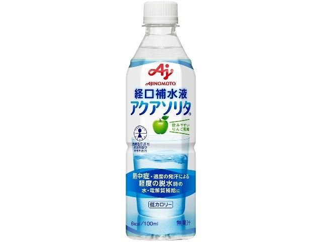 経口補水液「アクアソリタR」は、熱中症・過度の発汗による軽度の脱水時の水・電解質補給に適しています。
