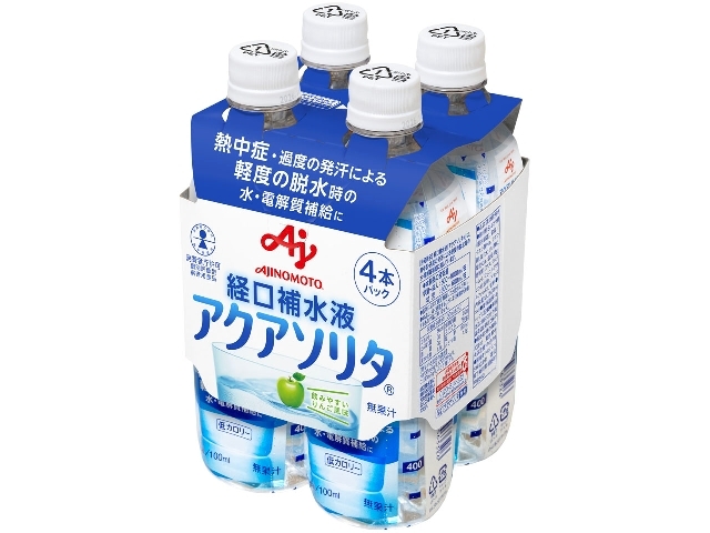「アクアソリタ」は特別用途食品個別評価型病者用食品です。熱中症・過度の発汗による軽度の脱水時の水・電解質補給に適しています。