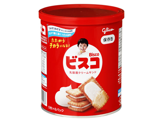 長期保存が可能で、保存食としてご利用いただけます。家族みんなを応援する乳酸菌クリームサンドです。北海道産ミルクを使ったクリームを、やさしい甘さのビスケットでサンドです。