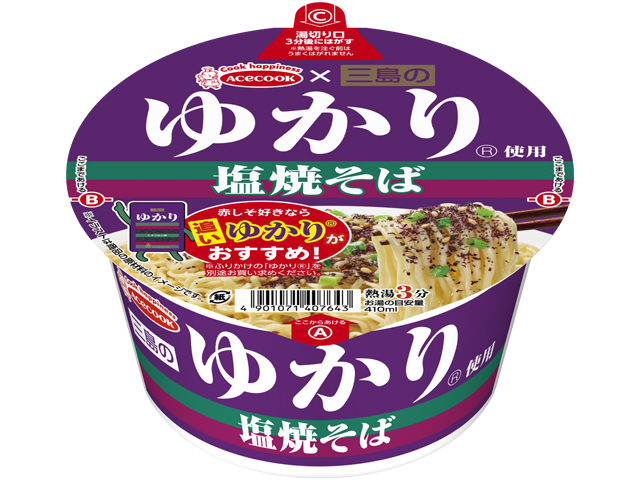 爽やかな風味の赤しそ「ゆかり?」をふりかけて仕上げるカップ焼そばが登場!ごま油の風味と相性抜群の暑い季節の食欲をそそる塩焼そば。