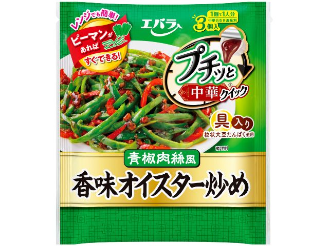 オイスターソースとホタテの旨みを効かせました。具入りなのでピーマンだけで満足感のあるおかずが手軽に作れます。