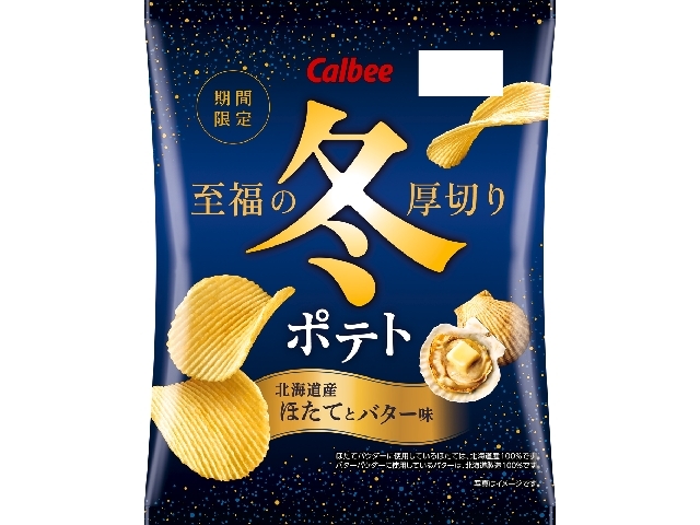 大人のためのちょっと贅沢な期間限定ポテトチップス。厚切りのポテトチップスに、コクのあるバターの味わいと北海道産ほたての旨みをきかせ、至福の味わいに仕上げました。