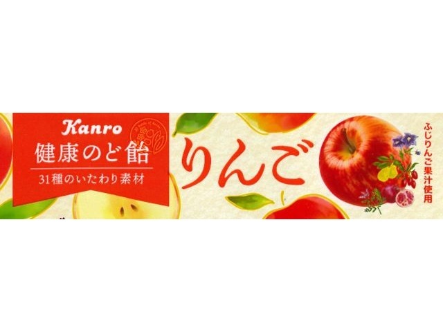 31種のいたわり素材(和漢素材)に加え、りんごのやさしい味わいで自分をいたわるのど飴です。健康のど飴こだわりの31種のいたわり素材