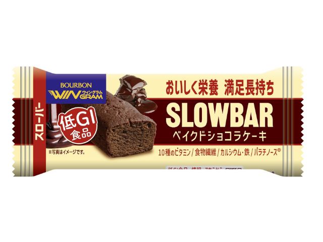 製品中にチョコレートを16%練り込み、焼きあげたケーキタイプのバー商品です。10種のビタミン、カルシウム鉄、食物繊維配合。糖質の吸収度合いが緩やかである低GI食品です。