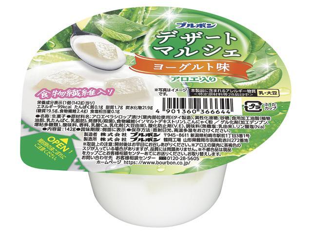 ゼリーの風味を改善し、より美味しくリニューアルしました。ヨーグルト味のゼリーとアロエ果肉がよく合う定番デザートです。