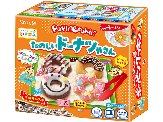 カスタード味とココア味のドーナツが全部で4個作れる手作りお菓子。ドーナツの形をした型に生地を押しつけて模様を付けられます。電子レンジで温めると本物そっくりの食感のドーナツが作れます。