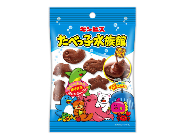 47種類のかわいい海の生きものの形のビスケットに、含浸製法でチョコレートを中までしみ込ませました。