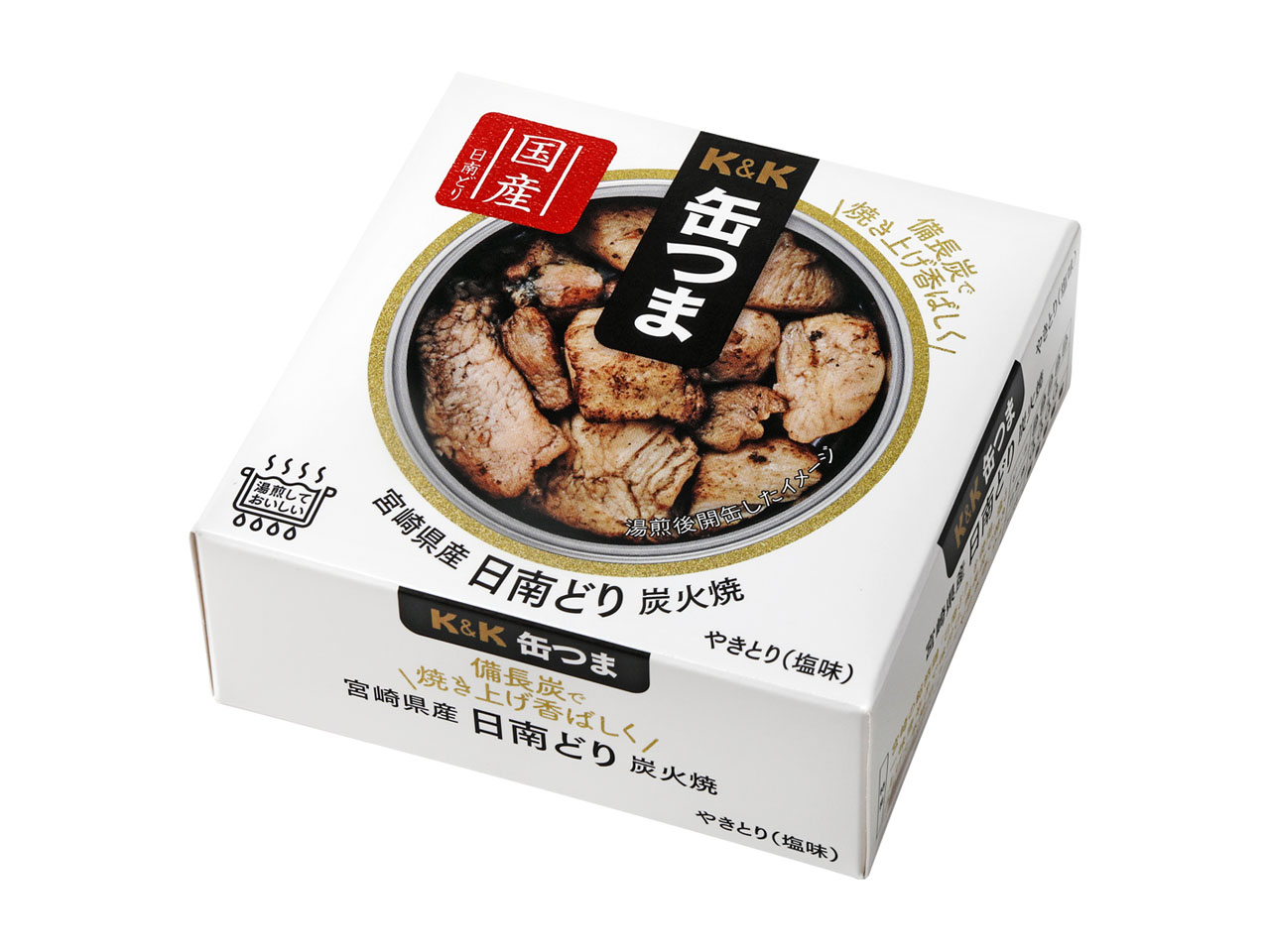 肴で、酒はうまくなる。 缶つまは、お酒に合う厳選された素材や、素材を活かした製法、メニューづくりにこだわり続けます。 宮崎の銘柄鶏「日南どり」を使用。 塩と一味唐辛子で味付け、備長炭で焼き上げた本格品。 KK0417422 鹿児島県産赤鶏さつま炭火焼の代替品です。