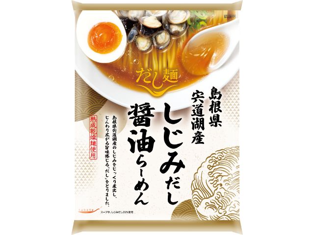 国産素材の「だし」のうまみが効いたラーメン「だし麺」。島根県宍道湖産しじみを煮出してとった「だし」を使用したスープはじんわりと広がるしじみの旨味と醤油のバランスが絶妙です。冷やしても美味しく召し上がって頂けます。麺は、生麺を約2日じっくりと時間をかけて熟成と乾燥させたコシのある生麺食感です。【ゆで時間・4分半】
