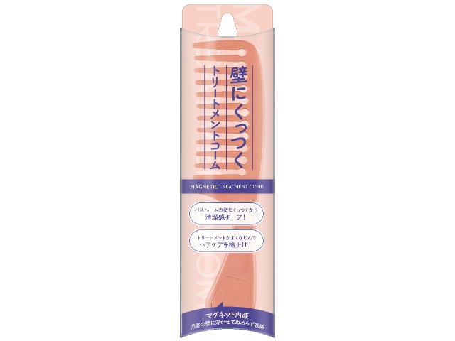 柄の部分にマグネットを内蔵し浴室などの磁石がつく壁に貼り付けることができる粗目コームです。マグネットが付く浴室壁面に浮かせて収納できるので、乾きも良く衛生的で、浴室の壁面や扉などの限られたスペースを有効的に活用することができます。