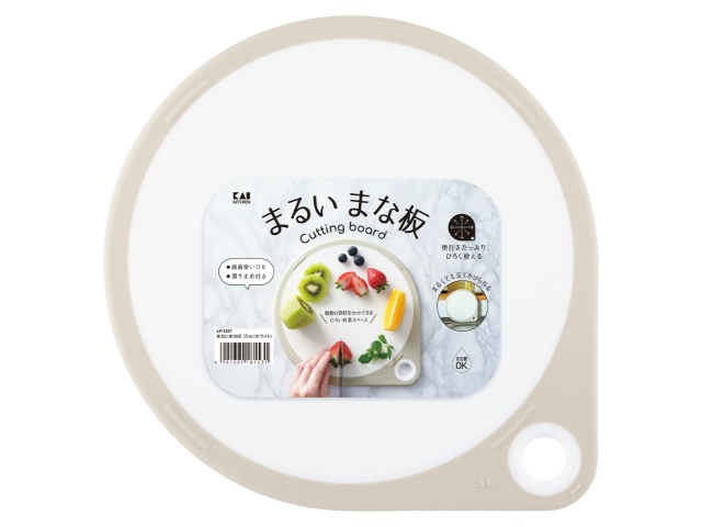 奥行きたっぷり、ひろく使えるまるいまな板。ひろい作業スペースが魅力の円形状のまな板。複数の食材の下ごしらえも、まな板上で行うことができ、洗い物も軽減できます。裏表で違うタイプの表面加工を施すことで食材の使い分けの目印になります。