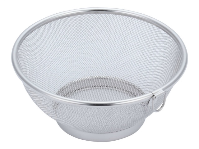 ベーシックな丸型ザルです。錆びにくく衛生的なステンレス製引っ掛けて収納できるフック穴付き