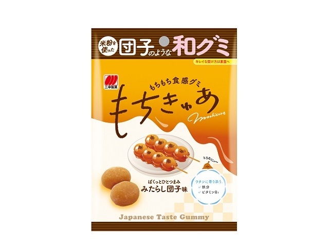 米粉を使ったソフトなとろむにゃ食感が特徴の団子のような和グミ。 絶妙な甘しょっぱさがクセになる「みたらし団子味」を手軽にひとくちでお楽しみいただけます。