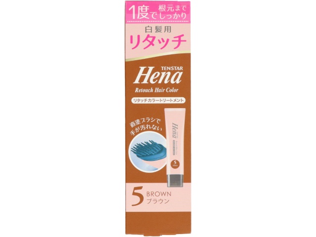 簡単リタッチ、部分白髪用カラートリートメント。直塗りブラシで、手を汚さずに、気になる分け目・生え際の白髪をリタッチできます。放置時間5分。オリジナルヘナ葉エキス配合。特許技術「ミクロカラーコート処方」採用。無香料