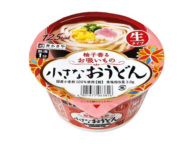 だしの上品な味わいが楽しめる「小さなおうどん」シリーズ。淡口醤油を使用し、優しくすっきりとした味わいに改良しました。フルーティーな柚子の香りが特徴の和風スープと、やさしい食感の生タイプめんが特徴です。