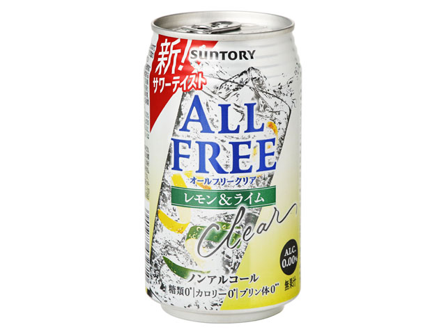 サワーテイストのオールフリー、オールフリークリアです。キリっとしたレモン&ライムの味わいと甘くない爽快感。アルコール0.00%カロリーゼロ糖類ゼロプリン体ゼロ。