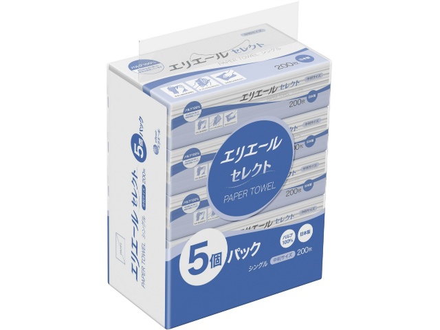 大王製紙 エリエールペーパータオル セレクト シングル200枚(中判)5Px1