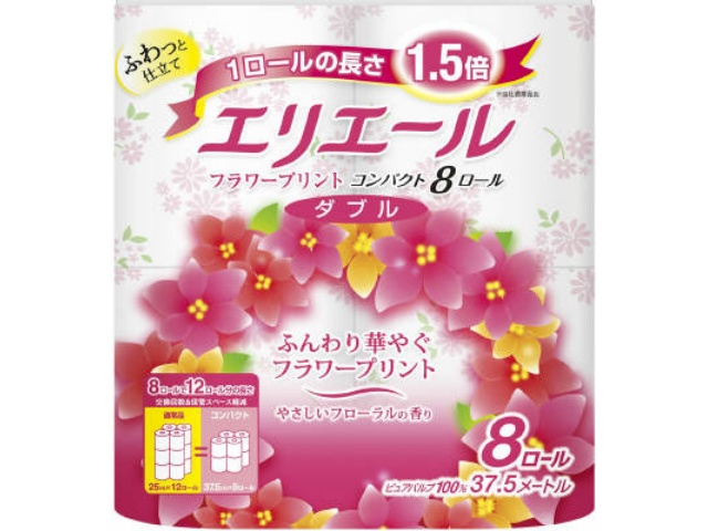 大王製紙 エリエール トイレットティシュー フラワープリント コンパクト8R(ダブル)x1