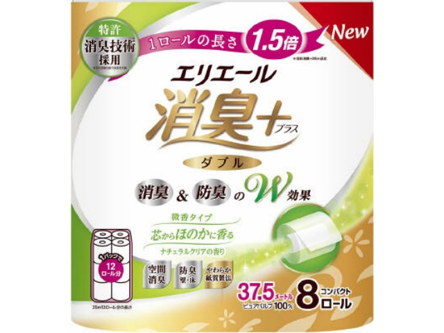 大王製紙 エリエール 消臭+トイレットティシュー 芯からほのかに香るナチュラルクリアの香り コンパクト8R(ダブル)x1