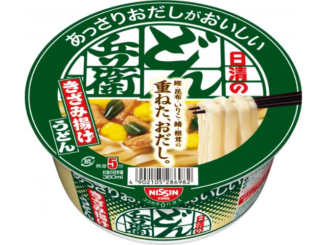 「日清のあっさりおだしがおいしいどん兵衛 きざみ揚げうどん」が”鰹・昆布・いりこ・鯖・椎茸”の5種のおだしを重ねた味わいになって新登場。