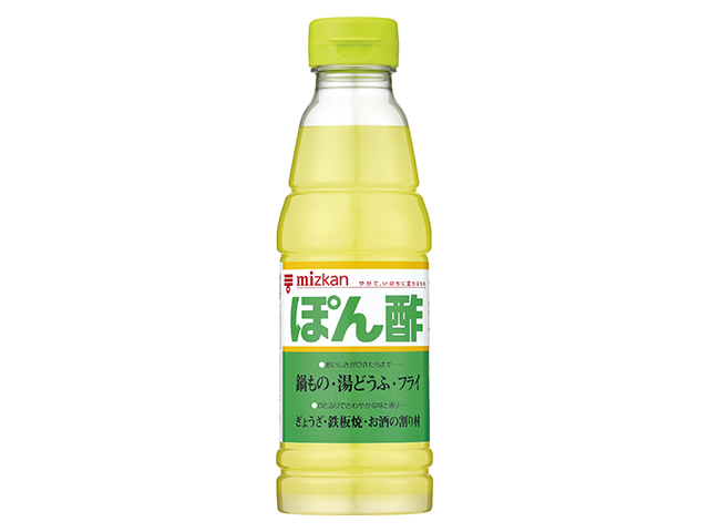 ひとふり、ふたふり、豊かな風味。かんきつ果汁に醸造酢を加えたシンプルな味わいのぽん酢です。鍋料理をはじめ、湯どうふ・フライ・お酒の割り材などにお使いください。