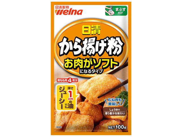発酵調味料と酵素により、むね肉もソフトに仕上がります。お肉にまぶして揚げる、手軽なまぶし調理タイプのから揚げ粉です。冷めてもジューシーな仕上がりです。深さ1pの油でも調理ができます。