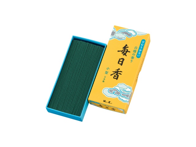 いにしえより聖なる木とされる天然白檀を厳選し、数種の生薬を調合した毎日香秘伝の、自然で奥深い香りはそのままに、現代の生活に馴染む甘さと透明感をプラス。洗練された清らかな毎日を願う、けむりの少ない毎日香です。